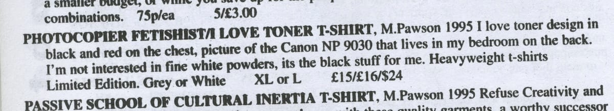 That summer I was staying with my dad who'd been living the USA for the last decade after a pretty messy divorce and had recently gotten back in touch. I was spending time in his office which had a photocopier which I used to run off a few copies, albeit on that weird paper size they have there. (I later did a reprint at A5 which is what's in the archive.)