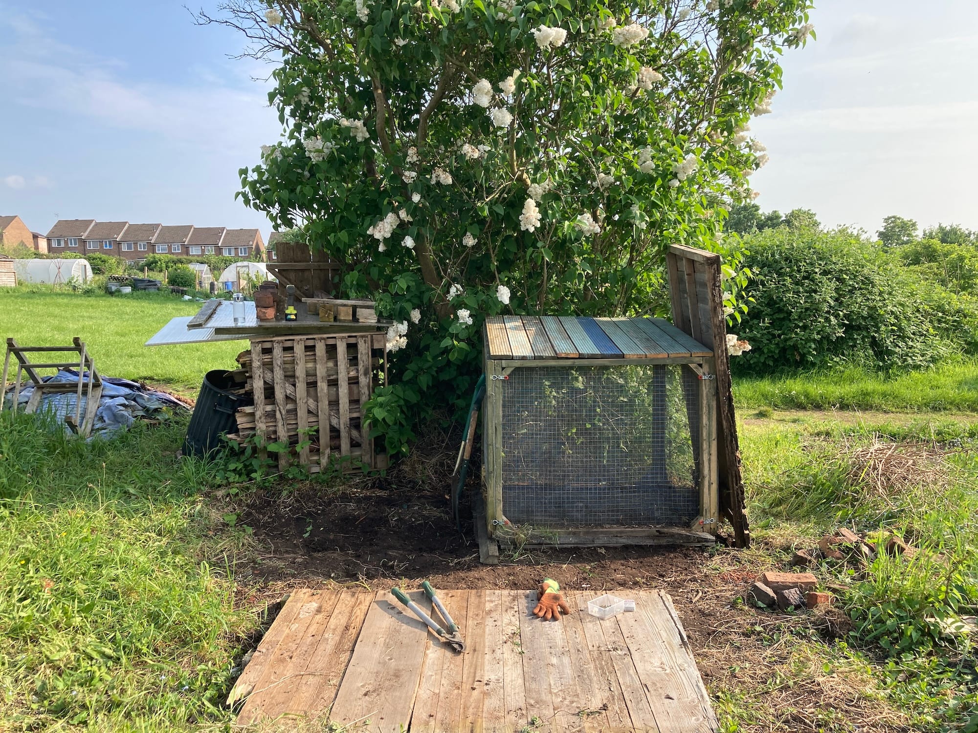 Over the last few weeks Val and I have been clearing the area (so many brambles...) and today I set up the first hot bay. It’s the old cube as I want to spend some time this summer refining the hexagonal design, but it takes up the same space so can be swapped out with ease.