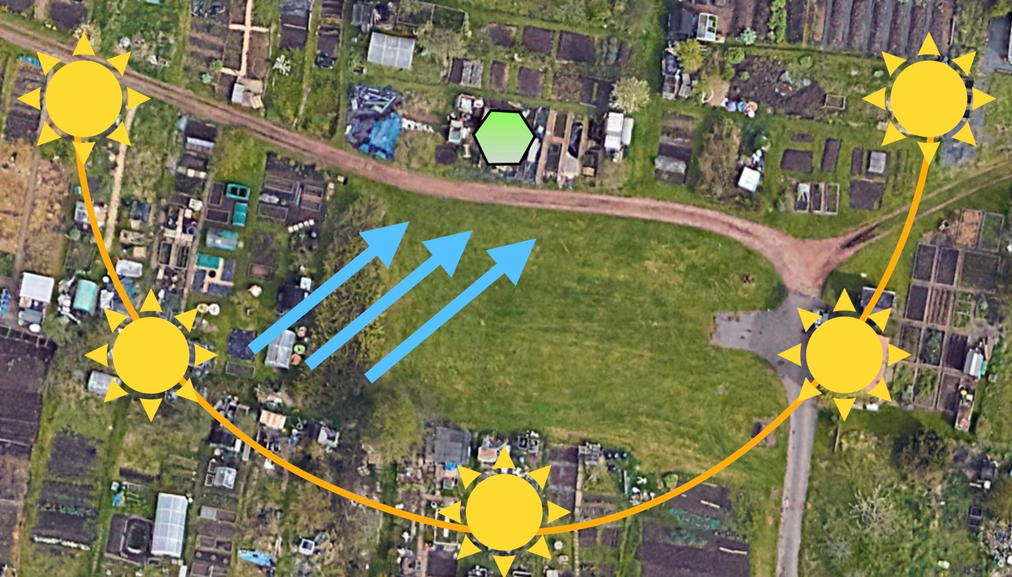 I’d contemplated building a large shading structure, or covering that side of the bay with reflective foil, and then I remembered we have a lilac tree on our allotment, and in its significant shade is an area we’re definitely not planning on using. So I drew a sketch.